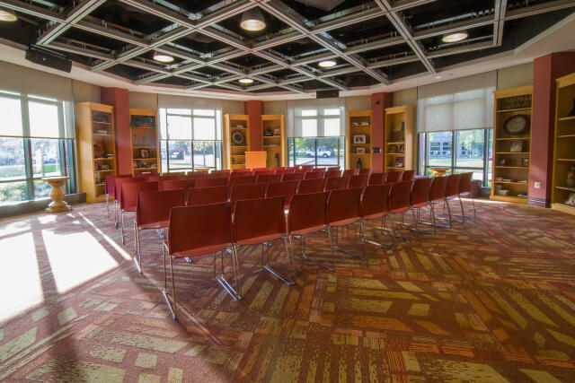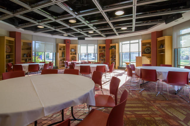 With floor-to-ceiling windows overlooking High Street, and accompanying floor-to-ceiling bookshelves, the Alonso Family Room is perfect for a small banquet or meeting. Please note that the Alonso Family Room is only available during the summer months.